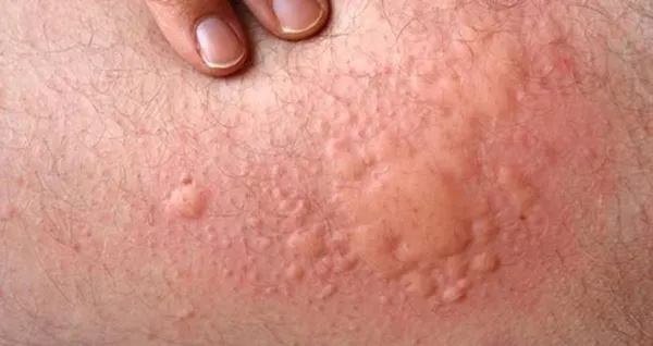 Ciltte etrafı kızarık şişkinlikler belirir.
