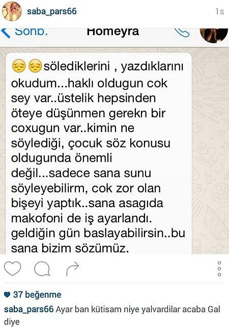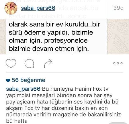 Programın yapımcısıyla mesajlaşan Seba bakın neler yazmış;