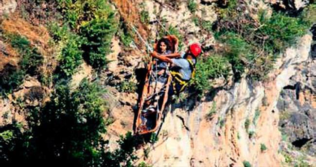 Yeşilbağ Mahallesi'nde balıkçılar 30 metrelik falezlerden bir kadının düştüğünü görünce 112 sağlık ekipleriyle polisi aradı. Olay yerine gelen itfaiye ekipleri, falezlerin dibindeki genç kadını kurtarmak için çalışmalara başladı. Sedyeye alınan kadın halatlarla yukarı çekilirken ekipler hayli zorlandı. 1.5 saatlik uğraşın ardından yüzünde sıyrıklar, vücudunda kırıklar oluşan genç kadın yaralı olarak yukarıya çıkartıldı. Sağlık ekiplerinin ilk müdahalesinin ardından hastaneye kaldırılan kadının uzun süre falezlerde dolaştığı, intihar etmek için uçurumdan atlamış olabileceği belirtildi.