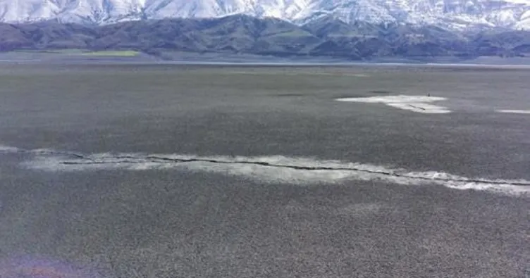 Elazığ'da 17 Şubat'ta meydana gelen 4.6 büyüklüğündeki depremin ardından suların çekildiği Keban Baraj Gölü sahasındaki yaklaşık 20 kilometrelik fay hattında yarıklar oluşturan zemin sıvılaşması drone ile Vahap Seçer görüntülendi.
