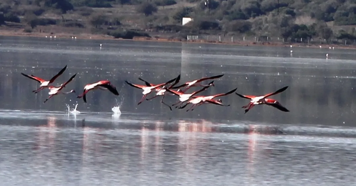 Kuzey Afrika flamingoları, göç yolları üzerinde bulunan ve Nisan ayına kadar konakladıkları sulak alanındaki görüntüleri ise görsel şölene sahne oldu.