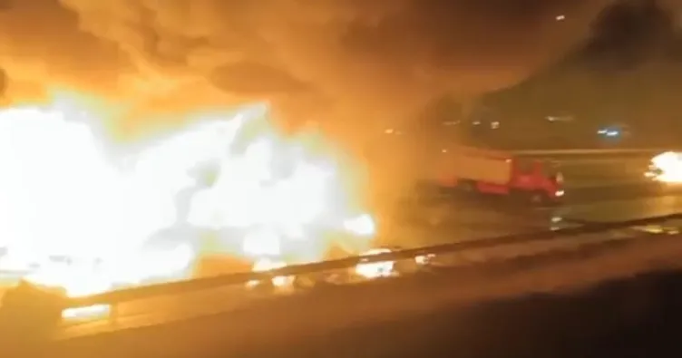 Gaziantep'te tır, otobüs ve otomobilin karıştığı trafik kazasında araçlar alev aldı.