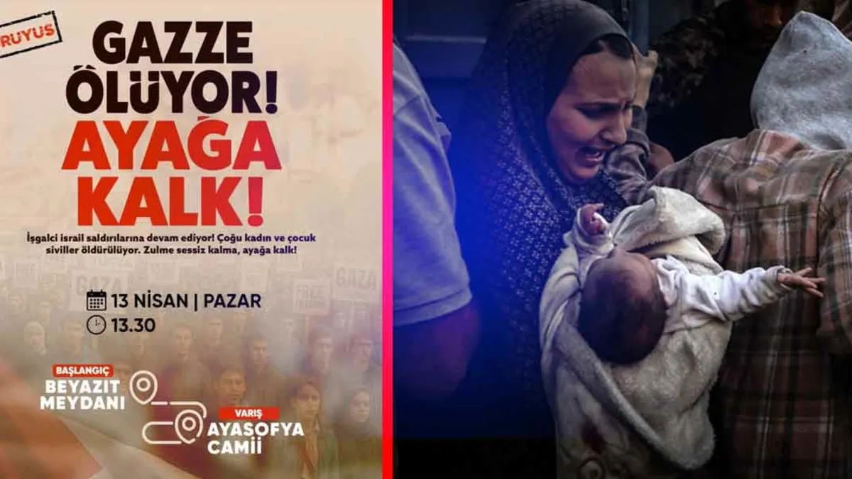 Gazze'ye destek eylemleri yeniden başlıyor. İşgalci İsrail'in Gazze'deki soykırımına karşı tepki olarak bugün İstanbul'da Beyazıt'tan Ayasofya'ya bir yürüyüş düzenlenecek. Bugün saat 13.30'da Beyazıt Meydanı'nda başlayacak yürüyüşün Ayasofya-i Kebir Camii Şerifi'nde sona ereceği açıklandı. İnsan Hak ve Hürriyetleri (İHH) İnsani Yardım Vakfı Genel Başkanı Bülent Yıldırım, İsrail'in saldırılarını protesto ve Gazze'ye destek eylemlerini yeniden başlatacaklarını, bu amaçla 13 Nisan Pazar günü Beyazıt'tan Ayasofya'ya yürüyüş düzenleyeceklerini söyledi.