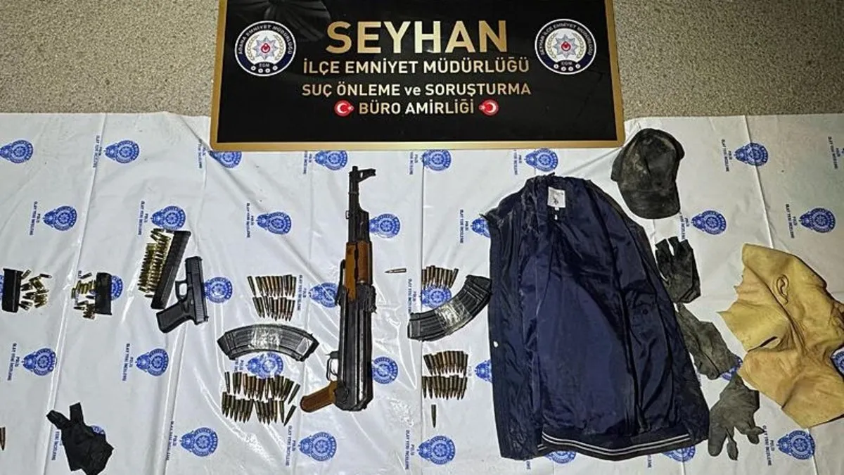 Adana'da geçen cuma gecesi merkez Seyhan ilçesinde GBT (Genel Bilgi Toplama) uygulaması yapan polisler, yüzlerini silikon maske ve şapkayla gizleyen motosikletli 2 şüpheliyi görünce 'Dur' ihtarında bulundu. Uyarıya dinlemeyen şüpheliler ise kaçmaya başladı. Bölgeye takviye isteyen ekipler, takip ettikleri şüphelilerin motosikletini, polis aracıyla çarparak devirdi. Motosikletten düşen şüphelilerin taşıdığı Kalaşnikof piyade tüfeği, ruhsatsız tabanca, 5 şarjör ile mermiler de yola saçıldı.