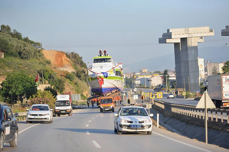 Gemiyi karayoluyla taşıdılar