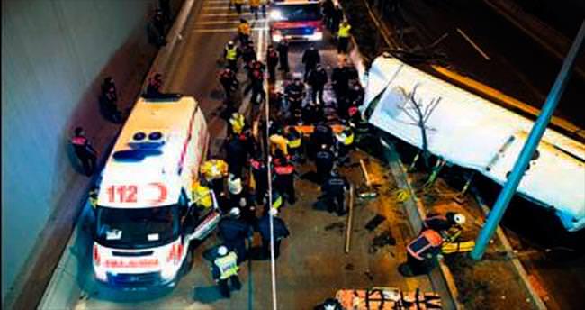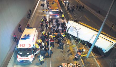 Ankara'da kontrolden çıkarak 10 metre yükseklikten düşen özel halk otobüsünde 1 kişi öldü 12 yolcu da yaralandı. Etimesgut-Sıhhiye-Ulus seferini yapan özel halk otobüsü, dün akşam Ankara Bulvarı'nda kontrolden çıkarak önce bariyerleri devirdi, daha sonra 10 metre yükseklikten Celal Bayar Tüneli'ne düştü. Can pazarının yaşandığı otobüste bulunan yolculardan Suat Kantarcı (53) hayatını kaybederken 12 kişi de yaralandı. Hastaneye kaldırılan yaralılardan 3'ünün durumunun ağır olduğu öğrenildi.