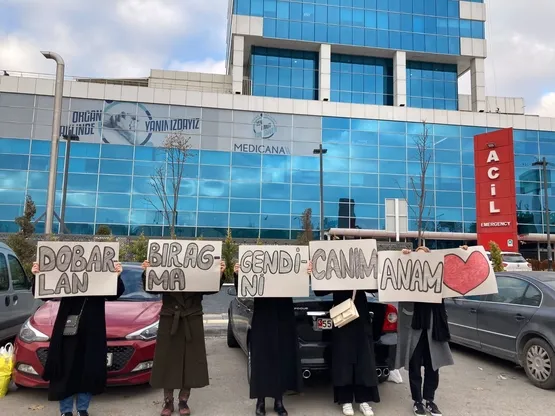 "Dobarlan bıragma gendini canım anam" diyen 19 yaşındaki üniversite öğrencisi Melike Yağmur Şentürk "Annem yakın zamanda koronavirüs atlattı. Daha sonra beyin tümörü teşhisiyle yine hastaneye yatırıldı. Çarşamba günü başarılı bir ameliyatı oldu. Koronavirüs tehlikesi nedeniyle hastaneye almayınca ablamla aklımıza bu geldi. Arkadaşlarımı da yanıma aldım. Annemin kaldığı hastanenin önüne geldim. Bu pankartı açınca hastane çalışanları da doktorlar da çok şaşırdı. Annem ve babam ise çok duygulandı" dedi.
