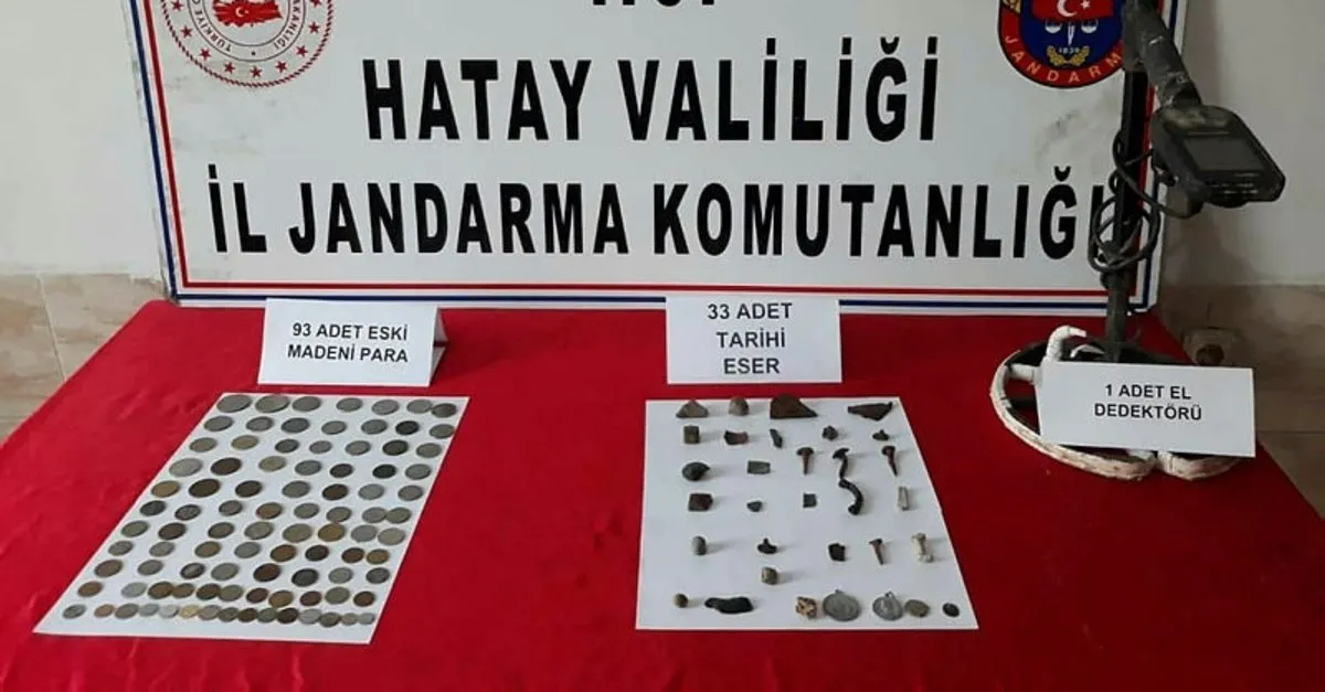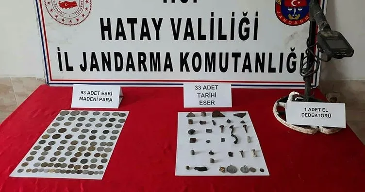 İl Jandarma Komutanlığı ekipleri, Reyhanlı ilçesi Kuşaklı Mahallesi'nde şüphe üzerine bir otomobili durdurdu. İçerisinde H.E. ile İ.C.'nin bulunduğu araçta yapılan aramada 93 eski madeni para, tarihi eser niteliği taşıdığı değerlendirilen 33 malzeme ve 1 dedektör ele geçirildi. Şüpheliler gözaltına alınırken, ele geçirilen eserler, Hatay Müze Müdürlüğü'ne teslim edildi.