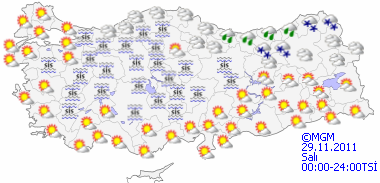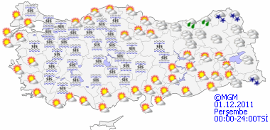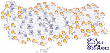 Yapılan son değerlendirmelere göre; Yüksek basınç merkezinin etkisi altında bulunan ülkemizde, Doğu Karadeniz bölgesi ile Samsun, Ordu ve Ardahan çevrelerinin yağışlı, diğer yerlerin parçalı ve az bulutlu geçeceği tahmin ediliyor. Yağışlar, kıyılarda yağmur, yağış alan diğer yerlerde karla karışık yağmur ve kar şeklinde olacak. Gece ve sabah saatlerinde iç kesimlerde buzlanma ve don olayı ile birlikte yer yer hafif sis hadisesi bekleniyor.