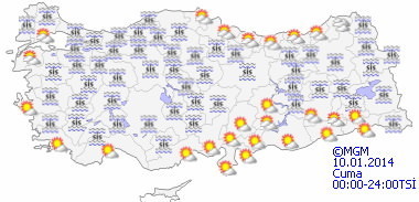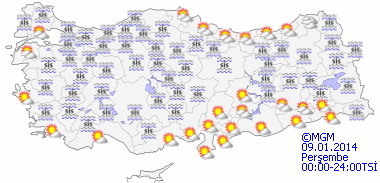 Meteoroloji, gece ve sabah saatlerinde kuzey, iç ve doğu kesimlerinde buzlanma ve don olayı ile birlikte yer yer yoğun olmak üzere sis ve pus beklendiğine dikkat çekerken, ulaşımda aksamalar gibi meydana gelebilecek olumsuzluklara karşı dikkatli ve tedbirli olunması gerektiğini bildirdi.