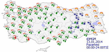 GÜNEYDOĞU ANADOLU: Az bulutlu geçeceği tahmin ediliyor. Bu sabah ve gece saatlerinde bölgenin doğusunda buzlanma ve don olayı ile birlikte yer yer sis ve pus hadisesi bekleniyor.
