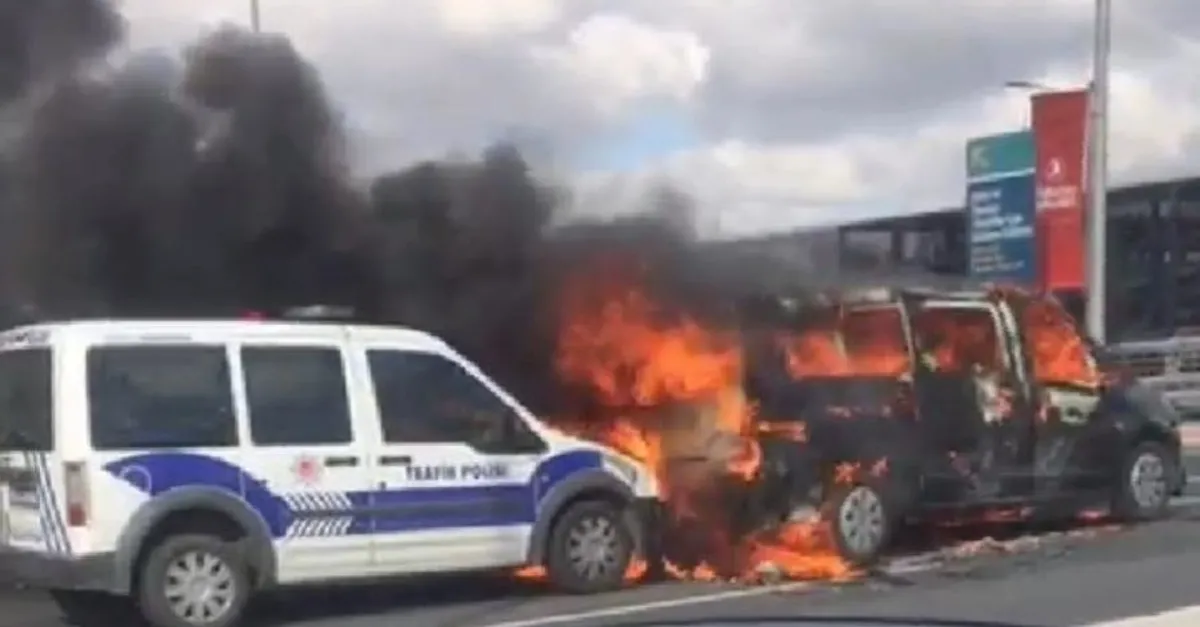 Olay saat 10.30 sıralarında İstanbul Havalimanı girişinde, giden yolcu terminaline giden yolda meydana geldi. Edinilen bilgiye göre havaalimanına yolcu getiren Beser Kuzu'nun kullandığı, 59 TR 600 plakalı VIP minibüs yanmaya başladı. Aracın ön tarafından alevlerin yükseldiğini gören sürücü aracı anında yolun ortasında durdurarak yolcusu ile birlikte kendilerini dışarıya attı. Bu sırada yangını gören havalimanı girişindeki polis ekipleri, yanan aracın olduğu yere ekibe ait araç ile gelerek, yolu anında trafiğe kapattı.