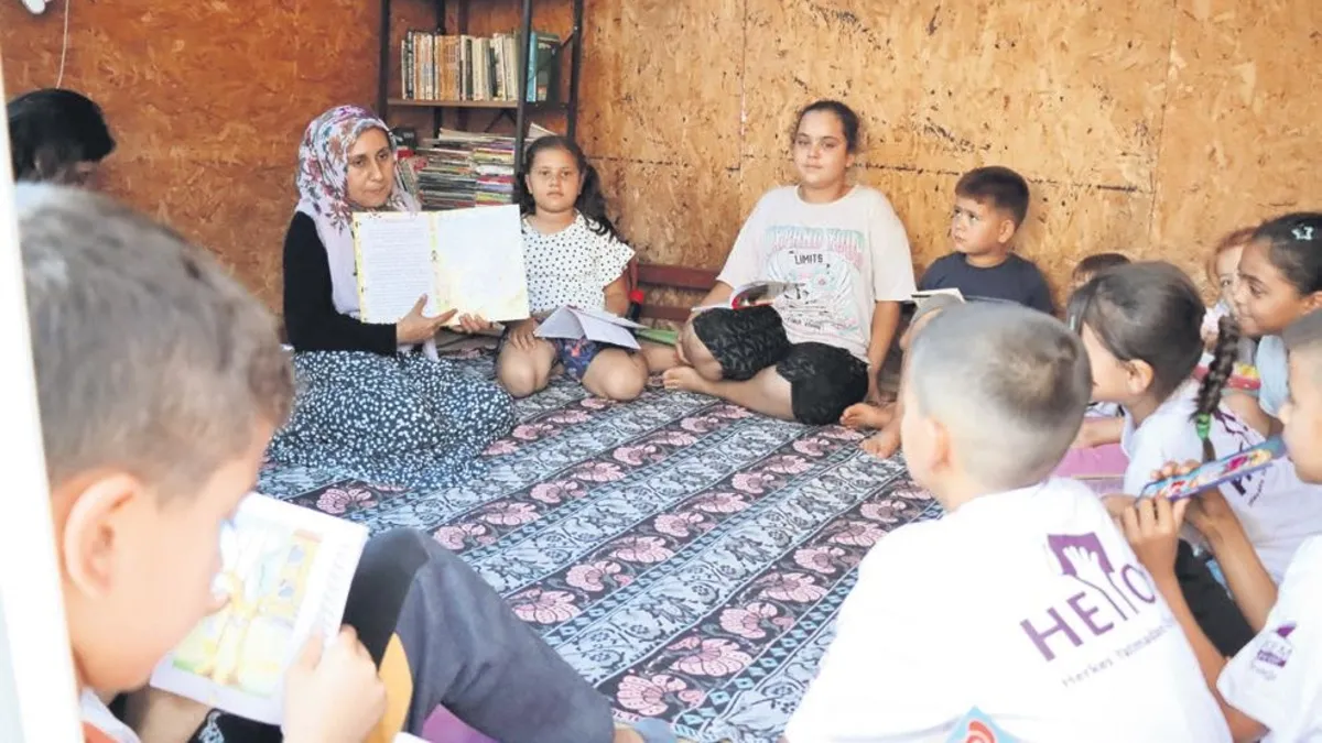 Hatay'da 6 Şubat 2023'teki depremlerde evi yıkılan 4 çocuk annesi Nihal Öztürk, evinin yerine eşiyle yaptığı kulübeyi kütüphaneye çevirerek mahalle çocuklarının kitap okuma alışkanlığı kazanmasını sağlıyor.