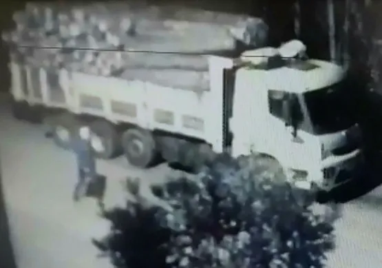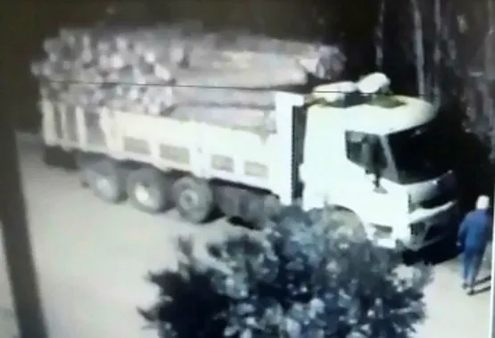 KAMYONA YAKLAŞTIĞI ANLAR KAYDEDİLDİ