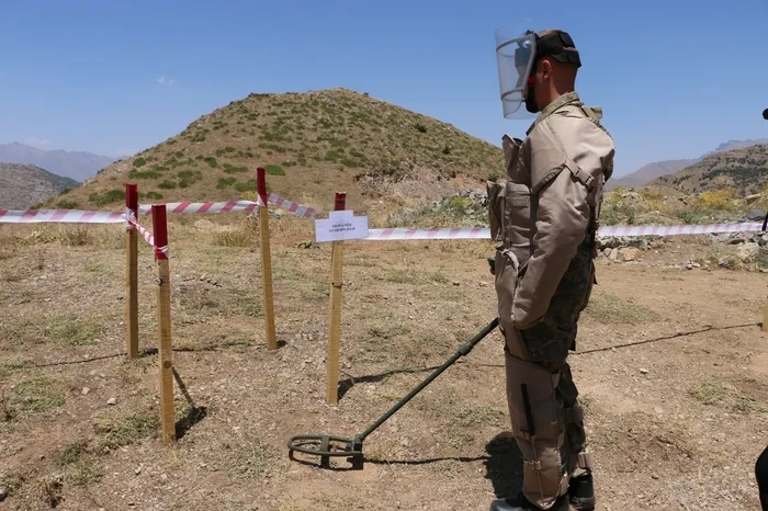 Hakkari'nin Çukurca ilçesinde tuzaklı bulunan mayınlar, Türk Silahlı Kuvvetleri'ne bağlı Özel Mayın Arama ve Temizleme (ÖMAT) timleri tarafından temizleniyor. Huzur ve güvenin sağlandığı bölgede, halkın 30 yıllık köylerine olan özlemi ÖMAT timlerinin çalışmasıyla sona erecek.