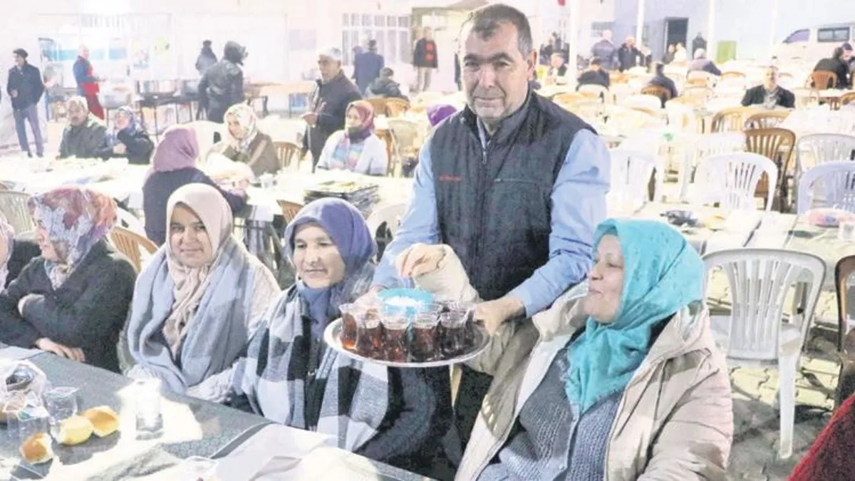 DENİZLİ'nin Kale ilçesi Gölbaşı Mahallesi'nde ramazanda kadınlar evlerinde 'İftarda ne yemek yapacağım' diye düşünmüyor. 700 nüfuslu, 350 evin bulunduğu mahallenin pazar yerinde düzenlenen iftarda, mahalleli oruçlarını birlikte açarken yemekleri erkekler hazırlıyor. İftara gelemeyenlere yemek gönderiliyor, iftardan sonra kadınlara çaylarını da erkekler getiriyor. 25 yıldır geleneksel hale gelen bu durumdan mahalledeki kadınlar da oldukça memnun.