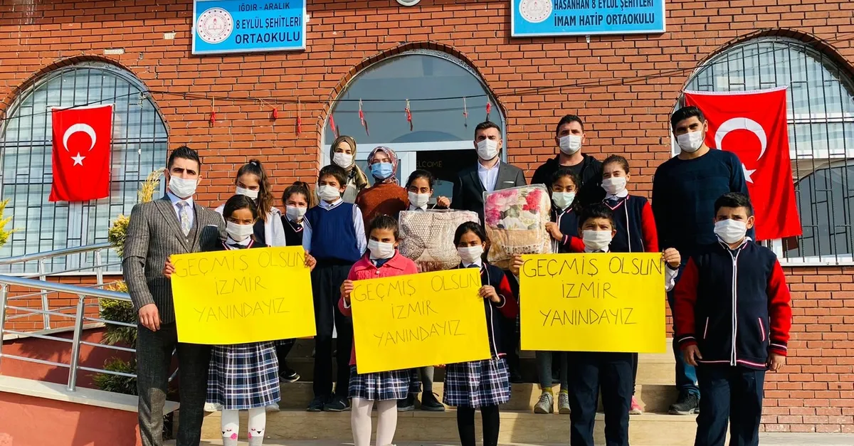 Okul öğretmenleri ve öğrencilerinin birlikte hazırladıkları yardım malzemelerine öğrenciler notlarda yazarak, geçmiş olsun dileklerini iletti. Topladıkları battaniyeleri ilçe milli eğitim aracılığıyla İzmir'e gönderen okulun müdürü Adem Çakmak :" İdare ve öğretmenler olarak öğrencilerimizin bu duyarlılıklarına ortak olduk. Çok güzel bir duygu. Minik yüreklerinden hiç görmedikleri insanlara yardım etmek muazzam bir olay. Allah bir daha bu felaketleri bize yaşatmasın" dedi.