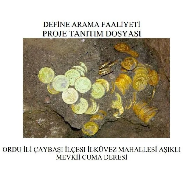 Çaybaşı ilçesi İlküvez Mahallesi'nde Cuma Deresi üzerinde yer alan doğa harikası Aşıklı Şelalesi gölünde define olduğunu öne süren B.B., hazırlattığı 51 sayfalık define arama faaliyeti proje tanıtım dosyası ile Ordu Valiliği ile İl Kültür ve Turizm Müdürlüğü'ne başvurdu.