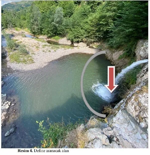 Define araması sırasında dere yatağında suyun akış yönünün 50 metre uzaklıktaki değirmene yönlendirileceği, göle su akışının doğal taşlarla yapılacak bentle kesileceği, kırıcı ekskavatör kullanılarak göl dibinin kazılacağına yer verildi.