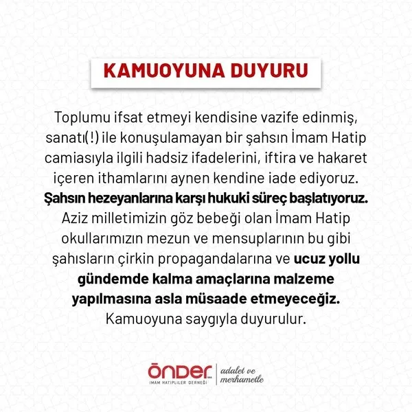 ÖNDER İMAM HATİPLİLER DERNEĞİ GENEL BAŞKANI: TÜM HUKUKİ SÜREÇLERİ BAŞLATIYORUZ