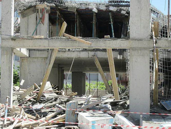 İlçenin Çakır mahallesi Ofis caddesinde bulunan ve yapımı devam eden iki katlı bir inşaatta ilk olarak üst kata dökülen betonun bir bölümü çöktü.