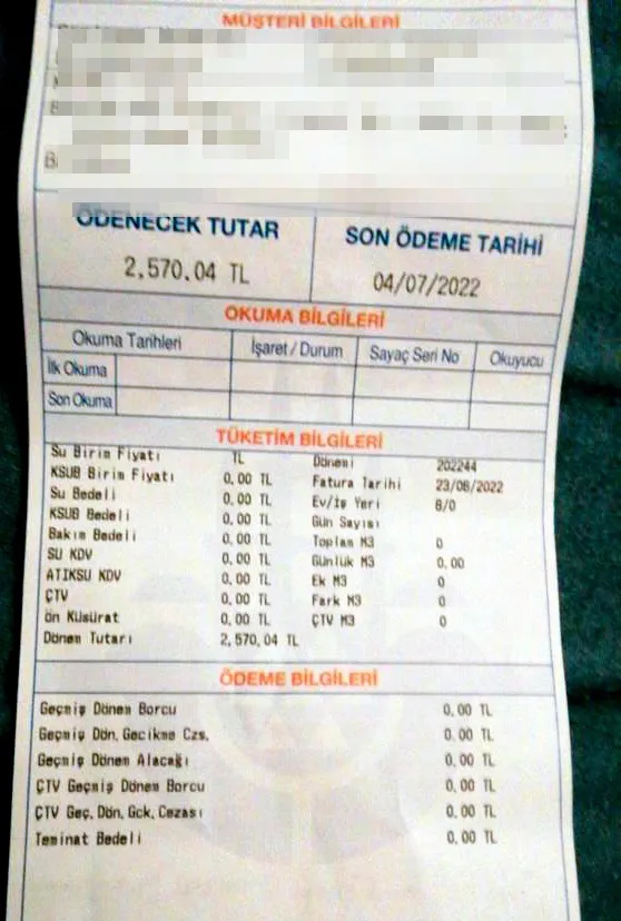 Topuz, "İSKİ yetkililerine itiraz için aradığımda bir türlü ulaşamadım. En sonucusun da on beş dakika bekledim, inat ettim. Cevap vermedikleri gibi dönüşte yapmadılar. Faturanın neden bu kadar yüksek geldiğini sormak için muatap bulamadım" dedi.