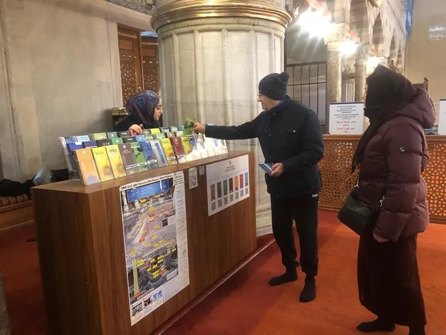 Yılmaz ilk olarak "Hem Sultanahmet Camii'nde hem de Yeni Camii de gönüllülerimiz hizmet veriyor. Elimizden geldiğince buraya gelen turistlere İslam'ı anlatmaya çalışıyoruz. Gönüllülerimizin yüzde 85'i kadınlardan yüzde 15'i erkeklerden oluşuyor. Üniversite mezunu ya da öğrenciler bulunuyor. Farklı üniversitelerden okuyan yabancı öğrencilerimiz de var. Stantta 24 dilde Kur'an-ı Kerim bulunuyor. İngilizce, Almanca, Fransızca, Korece, Çince, Çekçe, Macarca, Romance, Hintçe gibi diller de var. Gelen turistlere Kur'an-ı Kerim hediye ediyoruz. Büyük bir dağıtım oluyor. Yabancıların tur programına göre geldikleri ülkeler farklı oluyor. Örneğin İtalyanların yoğun olduğu dönem elimizde İtalyanca Kur'an-ı Kerim kalmıyor. Kur'an-ı Kerim'e ilgi çok fazla var" diyor.
