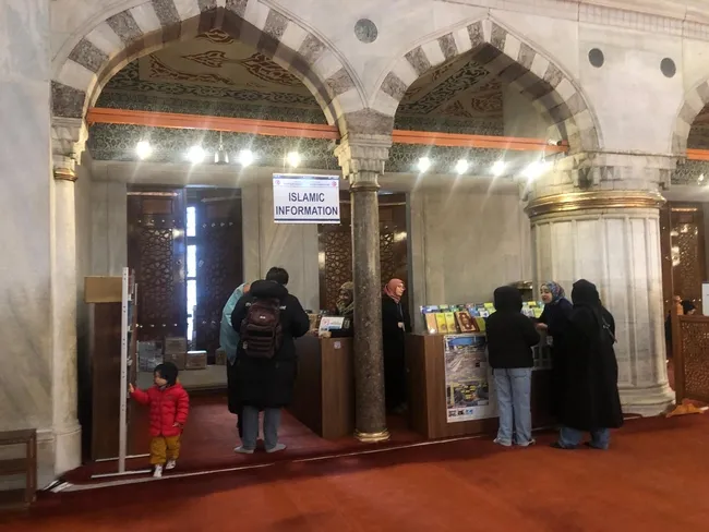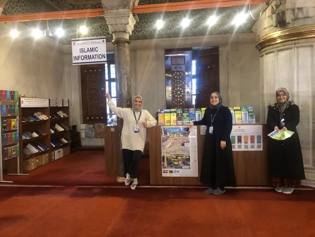 Sultanahmet Camii'nin ana kapısından girer girmez ilerde solda İslam Bilgilendirme Merkezi bulunuyor. Çalışan ve gönüllülerden oluşan 82 kişi ise görev dağılımına göre haftanın her günü merkezi boş bırakmıyor. Sabahtan yatsı namazına kadar gelen her turiste İslam'ın temel kaidelerini anlatmak için çabalıyor. Güler yüzlerini, sıcakkanlılıklarını turistlere yansıtan bu gönüllüler, yabancı turistlerin İslam'a dair merak ettikleri sorulara büyük bir dikkatle cevap veriyor. Biz de SABAH Gazetesi olarak gönüllülerin çalışmalarını, neler yaptıklarını yerinde şahit olmak için merkeze gidiyoruz.