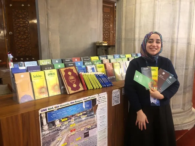 * Menekşe Senanur Urgan - Marmara Üniversitesi İngilizce İlahiyat Fakültesi'nden mezun (24): "Cami içindeki stant çok aktif ve çok güzel deneyimler yaşıyoruz. Burada İslam ile ilgili hiç bilgisi olmayan insanlara İslam'ı anlatma şansımız oluyor. Bazen anlatımlarım sonrasında iş Kelime-i Şehâdet'e kadar gidebiliyor ve çok çok özel bir an o. Onlar için büyük bir adım ve yeni bir dünya. Devamında ülkelerine gittiklerinden sonra da onlardan sorumluyuz. Onlarla ilgilenmeyi sürdürüyorum ve arkadaş oluyoruz."