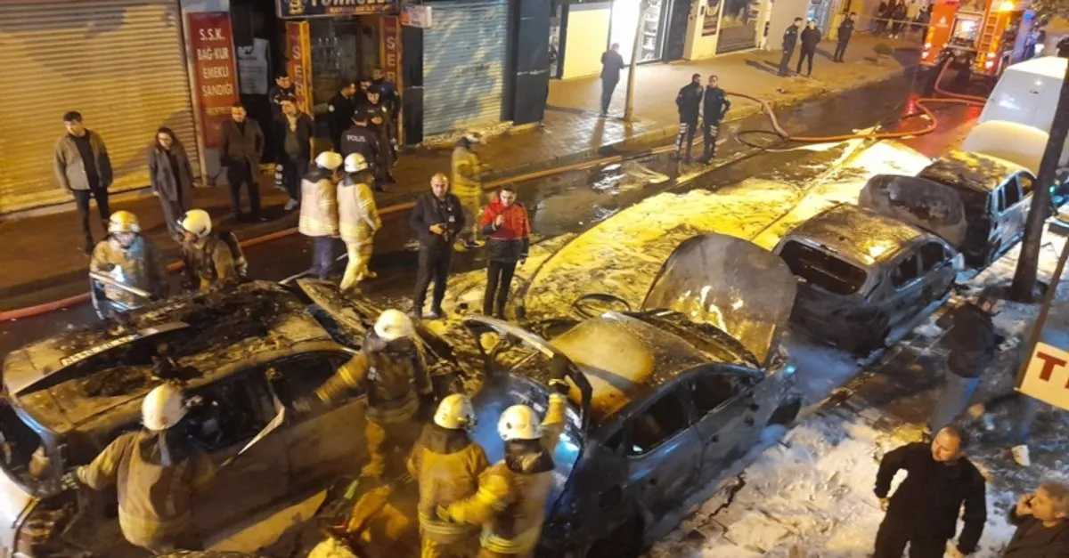 İhbar üzerine bölgeye çok sayıda itfaiye ekibi sevk edildi. İtfaiye görevlileri, otomobillerden birinde patlamaya da yol açan yangını kontrol altına alarak söndürdü. Bina ile ATM'de de soğutma çalışması yapıldı. Polis ekipleri de olay yerinde inceleme yaptı. Yangın sonucu kullanılamaz hale gelen araçlar, çekici yardımıyla götürüldü.