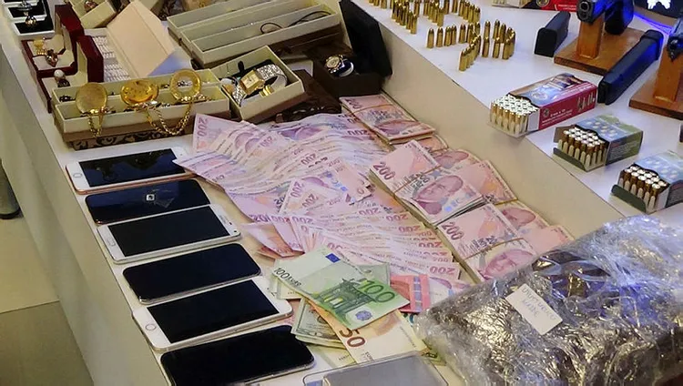 O tarihte düzenlenen operasyon kapsamında şüphelilerin ikamet ve iş yeri adreslerinde yapılan aramalarda 390 bin 430 TL, 39 bin 713 Amerikan doları, 2 bin 50 Euro, 220 İsviçre Frangı, 30 bin TL'lik çek, 8 silah, yaklaşık 300 gram uyuşturucu madde, çok sayıda altın mücevherat, 60 ayrı cep telefonu, 14 dizüstü bilgisayar, 17 tane hafıza kartı, 7 harddisk, ve çok sayıda banka hesap cüzdanları ile kartları ele geçirildi. Ayrıca suç örgütünün suçtan elde etmiş olduğu haksız kazançtan elde ettiği değerlendirilen çeşitli marka ve modelde 14 lüks araç soruşturma kapsamında inceleme altına alınmıştı.