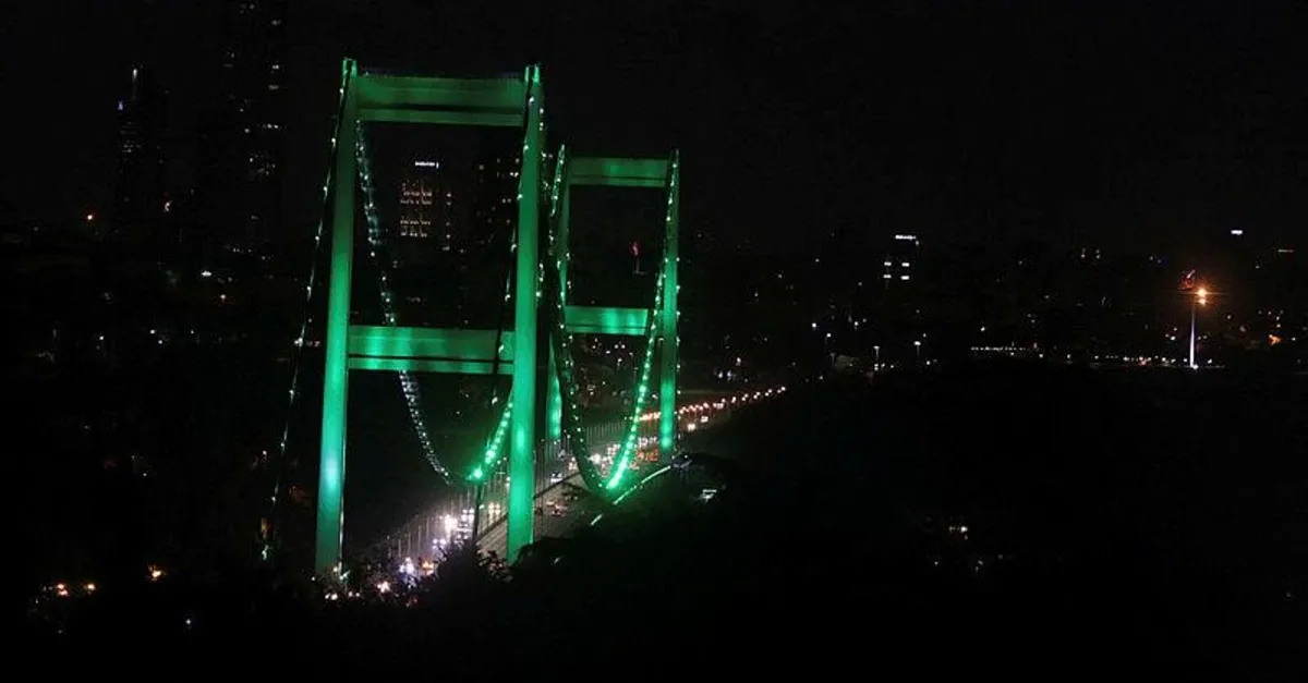 Köprülerde yeşil renkteki aydınlatma sabah saatlerine kadar devam edecek.