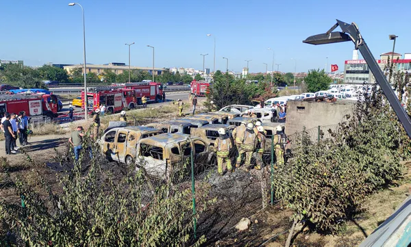 Sancaktepe Yadigar Sokak'taki Galericiler Sitesi'nde bir oto galerinin yeni ve ikinci el araçlarının satışa sunulduğu açık alanında henüz belirlenemeyen nedenle yangın çıktı.