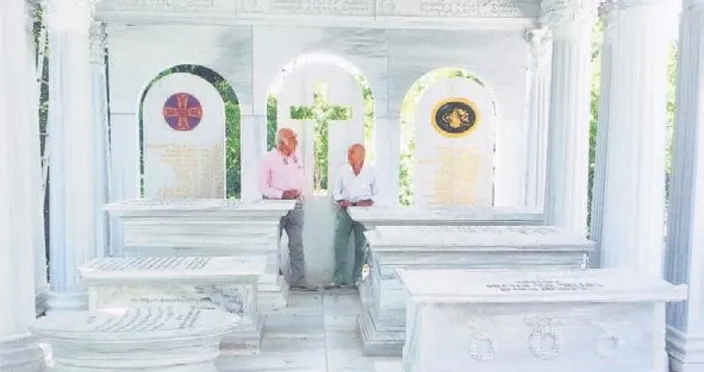 Osmanlı Tuğrası'nın bulunduğu anıt mezarın mermerleri Marmara Adası ve Afyon'da işlendi. Hraç Kırmızıyan, "İstanbul'un siluetini taçlandıran bu aile için, o eserlere yaraşır bir anıt mezar yapmakta ne yazık ki çok geç kaldık" dedi.
