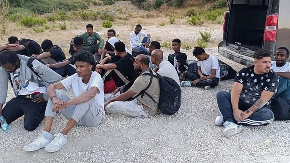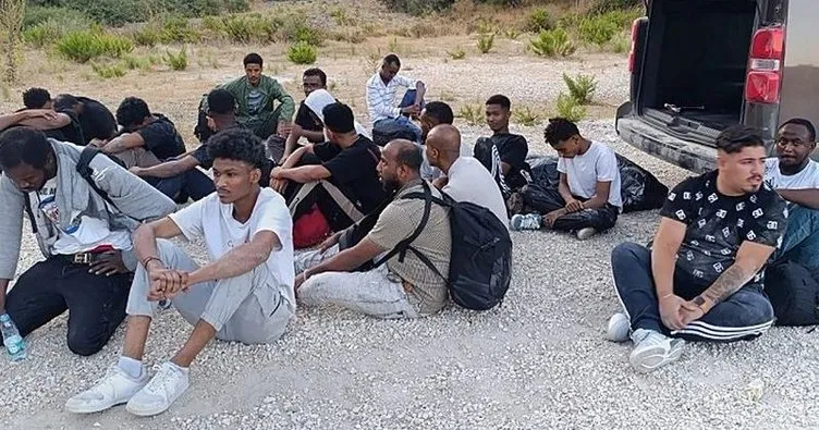 Jandarmanın da desteğiyle karada bulunan 2'si çocuk 32 düzensiz göçmen yakalandı.