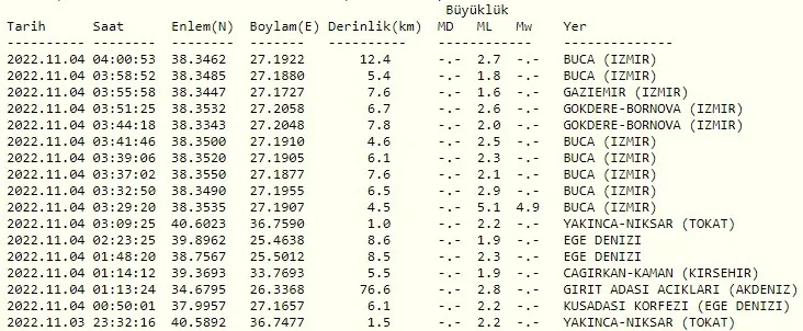 AFAD, İzmir'in Buca ilçesindeki 4.9 büyüklüğündeki depremin ardından 13 artçı sarsıntı meydana geldiğini bildirdi.