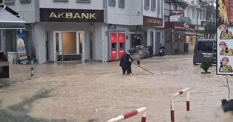 Belediye ekipleri ve bölge halkı, suların tahliyesi için çalışma yaparken denizin rengi de derelerden akan yağmur suyu nedeniyle kahverengiye büründü. Her yağmurda aynı sıkıntıyı yaşadıklarını belirten esnaf soruna bir an önce çözüm bulunmasını istedi.