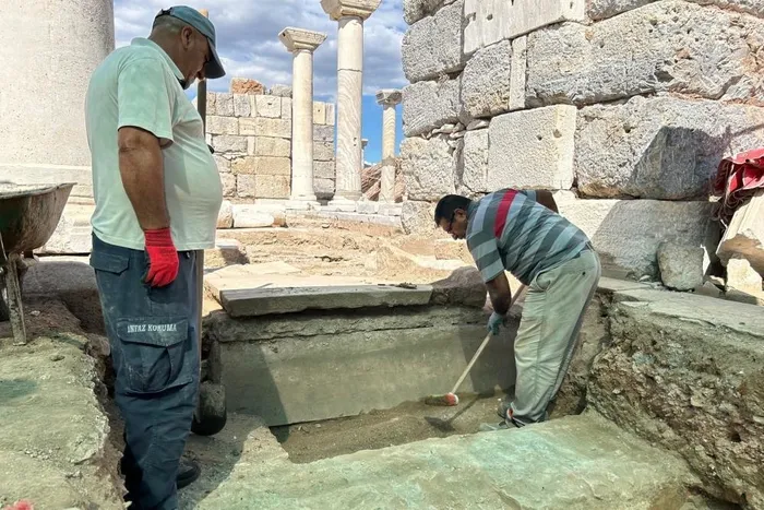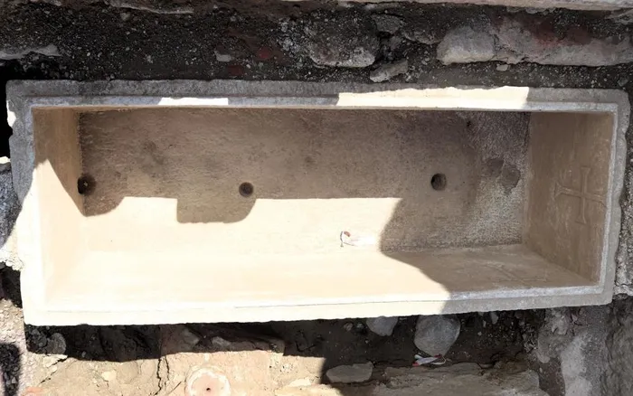 Doç. Dr. Sinan Mimaroğlu, çalışmalar sırasında kendilerini şaşırtan olayın, toprağın hemen 20 santim aşağısında su kanalı, künk sitemi, mozaiklerin yanı sıra; alanda 1 tane lahit ve 3 tane lahit formlu örme mezarın olduğunu ve lahitin içinde 12 tane bireyin ortaya çıktığını ifade etti. Lahit içerisinde toplu bir gömünün de olduğuna işaret eden Mimaroğlu, "Lahit bir Roma lahiti. Üzerinde de çok güzel bir epik kitabe bulunmakta. Romalı bir gladyatöre ait. Hristiyanlık döneminde iç tarafına üç tane haç kabartması yapılarak tekrardan kullanılmış" diye konuştu.