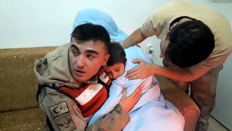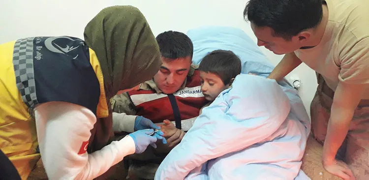 Jandarma ekipleri, tepedeki bir ağacın dibinde ıslanmış halde ve yalın ayak olarak buldukları çocuğun elbiselerini çıkarıp kendi elbiselerini giydirdi. Donmak üzereyken bulunan çocuğun ağzından çıkan ilk cümle ise askerlerden ayakkabı istemek oldu. Tepeden jandarma ekiplerinin kucağında indirilen küçük çocuk, ilk olarak yol kenarındaki bir petrol istasyonuna götürüldü. Üzerine yorgan örtülen küçük çocuk, kendisini bulan askerlere sarılarak ısınmaya çalıştı. Sağlık ekipleri tarafından kontrolleri yapılan küçük çocuk, daha sonra ambulansla hastaneye götürüldü. Tedavi altına alınan küçük çocuğun sağlık durumunun iyi olduğu öğrenildi.