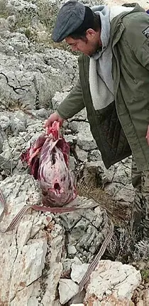 Vurulduktan sonra kafası kesilen, iç organları temizlenerek derisi yüzülen yaban keçisine ait karkas etin, dağda avı yapılan bir yaban keçisine ait olduğunu tespit eden ekipler, Antalya'dan bölgeye yaban keçisi avı için geldikleri öğrenilen A.E., M.Ö. ve B.E.'ye kara avcılığı kanununa muhalefet etmekten yasanın üç ayrı maddesinden cezai işlem uyguladı.