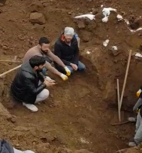 Olay yerinde 2'şer adet kürek, balyoz, kazma, murç ve 1'er adet levye ile yedek kazma sapı ele geçirildi. Şüpheliler, "2863 Sayılı Kültür ve Tabiat Varlıklarını Koruma Kanununa muhalefet" suçundan gözaltına alındı.