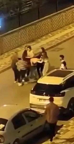 Bursa'da iki kadın grubu arasında sözlü tartışma çıktı. Kısa sürede büyüyen tartışma kavgaya dönüşünce kadınlar sokak ortasında saç saça birbirine girdi. O anlar kameraya yansırken, bir grup erkek ise kavgayı bir süre izlemeyi tercih etti.