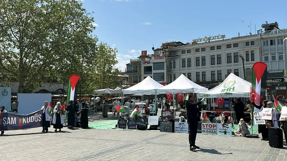 Eylemin ilk gününde yüzlerce kadın ellerinde Türkçe ve İngilizce "Metanyahu 21.yüzyılın Hitleridir", " Abluka kaldırılsın Filistin özgür kalsın" yazılı döviz ve pankartlar taşıyan Kadınlar Eminönü meydanında bir araya gelip oturma eylemi başlattı. Sabah saat 10'dan itibaren başlayan eylem Cumartesi ve Pazar günü de saat 10.00'dan akşam 21.00'a kadar devam edecek.