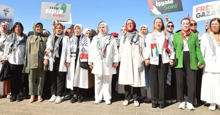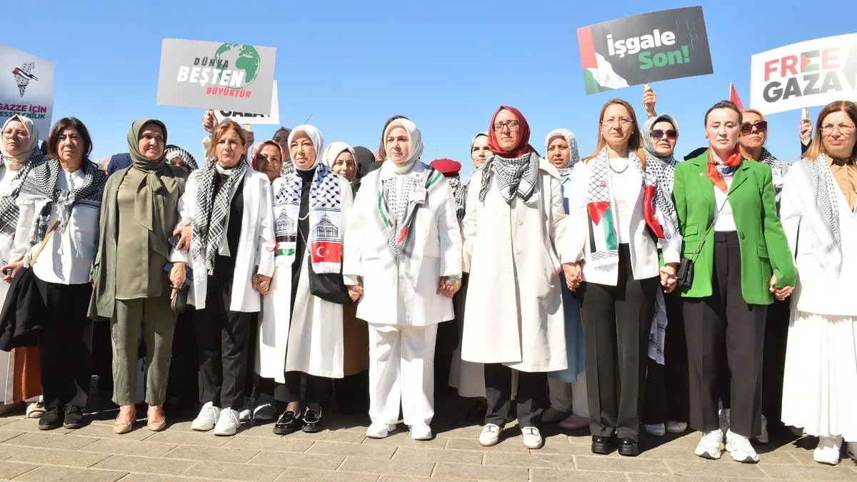 Etkinlikte konuşan AK Parti Kadın Kolları Genel Başkanı Tuğba Işık Ercan, "Bir çocuğun hiç göremeyeceği baharı, bir bebeğin hiç yaşayamayacağı çocukluğu. İşte bu acının adı Gazze. Kadınlar olarak Gazze'nin sessiz çığlığına ses olmak için el ele verdiğimizi tüm dünyaya göstermek adına meydanlardayız. Bugün seksen bir ilde kurduğumuz bu zincir Gazze'de evlatlarını kaybeden anne babaların zinciridir. Öksüz yetim bırakılan çocukların zinciridir. Ve insanlığını kaybetmeyen herkesin zinciridir. Biz yaralıları mı kurtaracaktım? Şehitleri mi taşıyacaktım? Ya da bir torba un mu bulmaya çalışacaktım? Yemin ederim eve tek bir torba un getirip çocuklarımın karnının doyacağını bilsem ölüme razı olurum diyen Gazzeli annenin sesi olmak için bu sesi dünyaya duyurmak için buradayız. Bu zulmü görmezden gelen herkese soruyorum. Kalbiniz nerede? Yüce Rabbimiz mealen bir insanı öldüren bütün insanlığı öldürmüş gibidir. Bir canı yaşatan bütün insanlığı yaşatmış gibidir buyuruyor Maide suresinde. Gazze bu ilahi kelamın sarsıcı bir imtihanıdır. Bizler İstanbul'dan, Hakkari'den, Trabzon'dan, Erzurum'dan ve Türkiye'nin seksen bir ilinden dünyanın dört bir yanındaki kadınlara kız kardeşlerimize sesleniyoruz. Barış kadınla mümkün. Değerli basın mensupları, barışçıl bir şekilde yola çıkan ve uluslararası sularda haydut İsrail'in hukuksuz müdahalesine uğrayan küresel Sumud filosunu dünya öylece seyretti. Nehirden denize özgür Filistin. Sevgili dostlar biz bugün bütün kimliklerimizden sıyrılarak sadece kadın kimliğimizle buradayız. Çünkü bu mesele ne dünyadaki rollerimizle ne taşıdığımız unvanlarla ne de sahip olduklarımızla ilgilidir. Bu mesele insanlık meselesidir. Bugün Türkiye'den tüm dünyaya tek bir şey söylüyoruz. Barış kadınla mümkündür. Slogan atmıyoruz. Vicdanlarımızla haykırıyoruz. Çünkü bazı sessizlikler vardır ki arşı yere indirir. Ve bizim sessizliğimiz Gazze'nin en gür çığlığı olacaktır." Dedi.