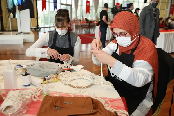 Pandemi sürecinde zamanlarının büyük bölümünü evlerinde geçiren, sosyal ve psikolojik olarak yıpranan ev hanımlarının gönüllerince bir gün geçirebilmesi için Atatürk Kongre ve Kültür Merkezi Yıldırım Beyazıt Salonu dev bir atölyeye dönüştürüldü. Son zamanlarda kadınlar arasında oldukça popüler hale gelen punch nakışı, makrome ve kanvas tablo boyama etkinliklerine katılan kadınlara BUSMEK eğitmenleri tarafından yapılacak çalışmalar hakkında bilgi verildi. Uzman eğitmenlerin gözetiminde yapılan etkinlikte kadınlar pandemi nedeniyle bir yıldır evde kalmanın stresini nakış ve makrome yaparak, tablo boyayarak attı.