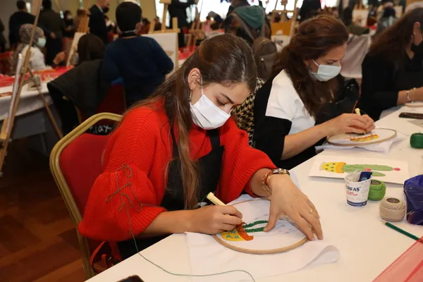 Panch nakışı workshopuna katılan Büşra Pehlivan Akçay da aylar sonra ilk kez evden çıktığını belirterek, kendisi için de büyük moral olan etkinlik nedeniyle Büyükşehir Belediyesi'ne teşekkür etti.