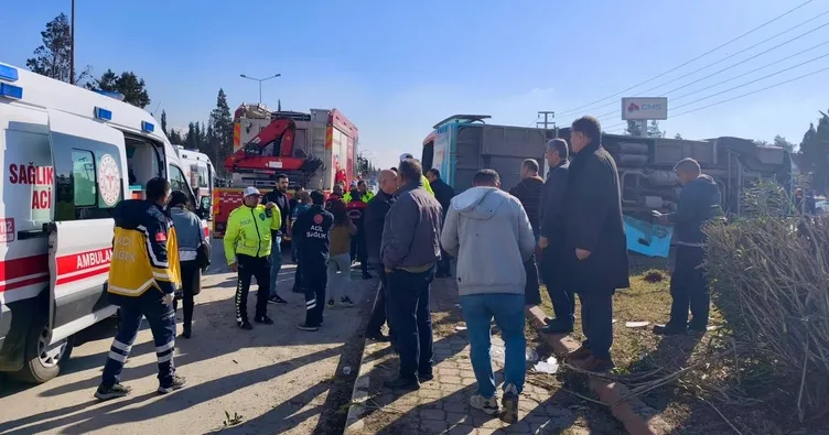 Çarpmanın etkisiyle halk otobüsü sağ tarafındaki refüje yan yattı. Bu sırada servis yolunda seyir halinde bulunan H.A. (42) idaresindeki otomobil ise kazanın etkisiyle panik yaparak servis yolunda bulunan beton elektrik direğine çarptı. Kazada, halk otobüsünde yolcu olarak bulunan 15 kişi ile kamyonet sürücüsü B.D. ve otomobil sürücüsü H.A. olmak üzere toplam 17 kişi yaralandı. Yaralıların hayati tehlikelerinin bulunmadığı, çeşitli hastanelerde tedavi altına alındıkları öğrenildi. Kazayla ilgili inceleme sürüyor.