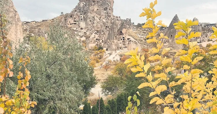 Dünyaca ünlü Kapadokya, sonbaharın gelişiyle birlikte adeta bir renk şölenine dönüştü. Kendine özgü yeryüzü şekilleriyle her mevsim farklı bir güzelliğe bürünen Kapadokya'da, peribacaları bu günlerde sarı, turuncu ve kızıl tonların oluşturduğu manzaralarla ziyaretçilerini büyülüyor. Sabahın erken saatlerinde gökyüzüne yükselen sıcak hava balonları, altın sarısı yapraklarla çevrili vadilerin üzerinde süzülerek kartpostallık görüntüler oluşturuyor. Göreme, Ürgüp ve Uçhisar çevresinde peribacaları arasında yürüyen turistler, sonbaharın huzur dolu atmosferinde doğanın benzersiz renk cümbüşünü izleme fırsatı buluyor. Zelve, Paşabağları ve Aşk Vadisi'nde güneş ışınlarının taş dokularına vurduğu anlarda ortaya çıkan renk oyunları, fotoğraf tutkunlarının da ilgisini çekiyor. Bölgeye hâkim olan hafif sis ve loş ışık, Kapadokya'nın mistik dokusuna romantik bir hava katıyor. Sonbaharın en zarif tonlarıyla süslenen Kapadokya, bu günlerde hem yerli hem yabancı turistler için doğanın büyüsünü yakalamak isteyenlerin uğrak noktası haline geliyor.