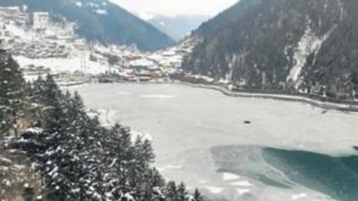 TRABZON'un Çaykara ilçesinde bulunan dünyaca ünlü turizm merkezi Uzungöl'de, bir haftadır süren soğuk hava ve yoğun kar yağışı nedeniyle hava sıcaklığının -10 dereceye kadar düşmesiyle gölün bir kısmı buz tuttu. Her mevsim yerli ve yabancı turistlerin akınına uğrayan Uzungöl, kış mevsiminde de kar yağışıyla birlikte gölün büyük kısmı buz tutarken, etrafında ise karla kaplı çam ağaçlarıyla kartpostallık görüntüler oluştu. Uzungöl'e gelen ziyaretçiler üst kısımda bulunan seyir terasında, eşsiz manzaranın keyfini çıkardı. Bol bol fotoğraf çektirip karda yürüyüş yaptı.
