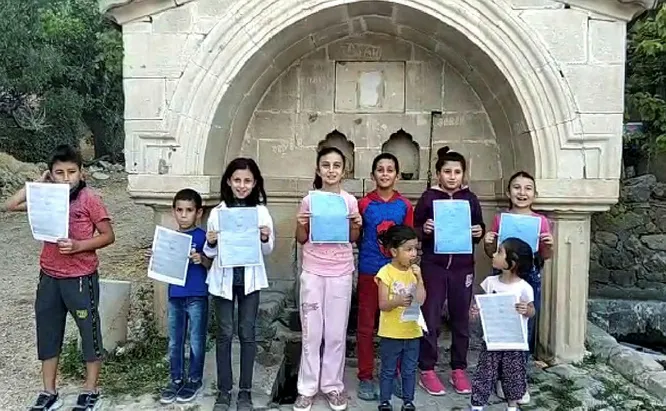 Görenleri duygulandıran çocuklar, köy çeşmesi önünde toplanarak 'Dımdım' için hazırladıkları el ilanlarını ellerine alıp bir video çekerek seslerini sosyal medyadan da duyurmaya çalıştılar.